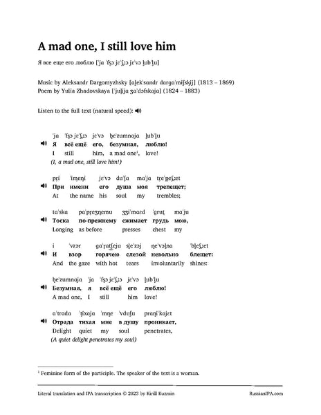 A mad one, I still love him (Я все еще его люблю) by Dargomyzhsky (6 pages)