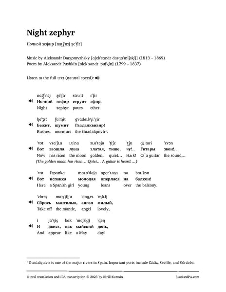 - Spoken recordings of the Russian text