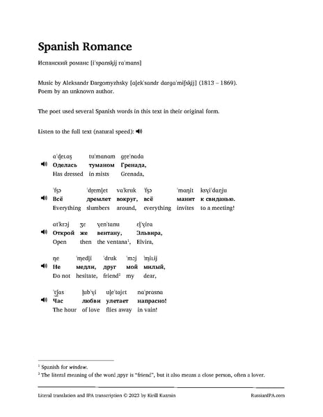 - Spoken recordings of the Russian text