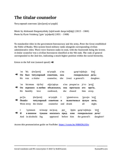 The titular counselor (Титулярный советник) by Dargomyzhsky (3 pages)