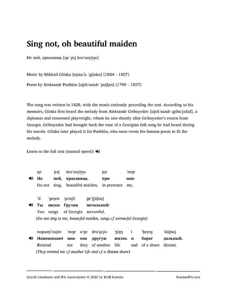 Sing not, oh beautiful maiden (Не пой, красавица) by Glinka (4 pages)
