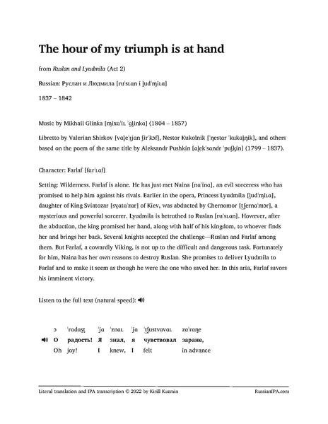 The hour of my triumph is at hand — Farlaf's rondo from Ruslan and Lyudmila by Glinka (19 pages)