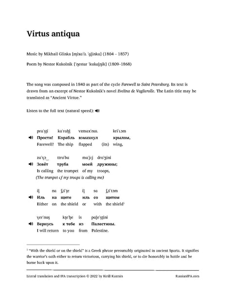 Virtus antiqua (Рыцарский романс) by Glinka (13 pages)