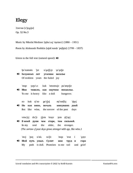 Elegy (Элегия), Op. 52 No.3 by Medtner (10 pages)