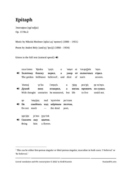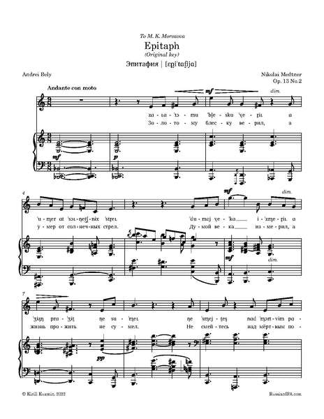Epitaph (Эпитафия), Op. 13 No.2 by Medtner (7 pages)