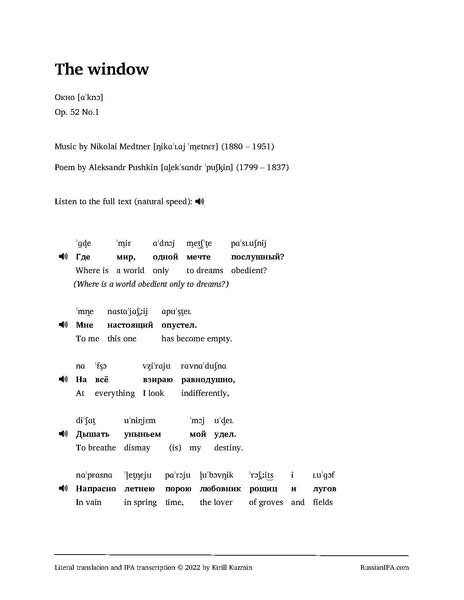 The window (Окно), Op. 52 No.1 by Medtner (16 pages)