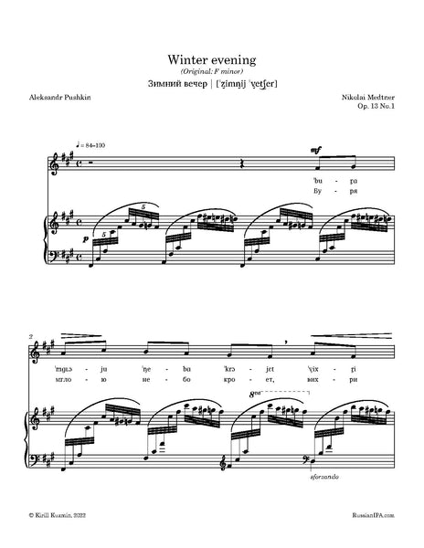 Winter evening (Зимний вечер), Op. 13 No.1 by Medtner (19 pages)