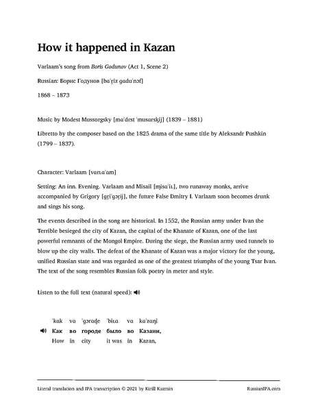 How it happened in Kazan — Varlaam's song from Boris Godunov by Mussorgsky (13 pages)