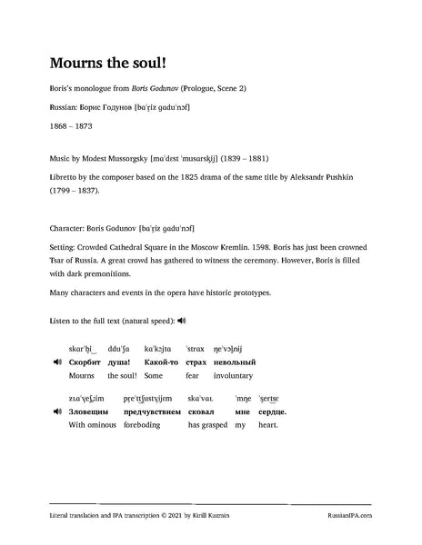 Mourns the soul! — Boris's monologue from Boris Godunov by Mussorgsky (6 pages)