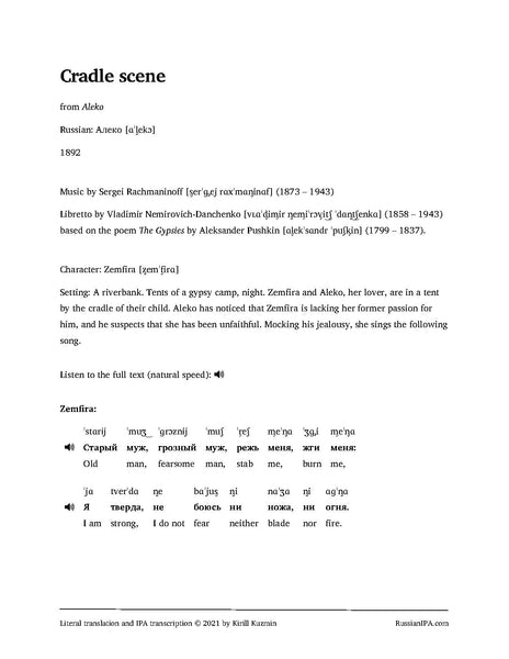 Cradle scene — Zemfira's scene from Aleko by Rachmaninoff (10 pages)