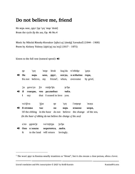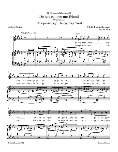 Do not believe me, friend (Не верь мне, друг), Op. 46 No.4 from By the sea by Rimsky-Korsakov (7 pages)