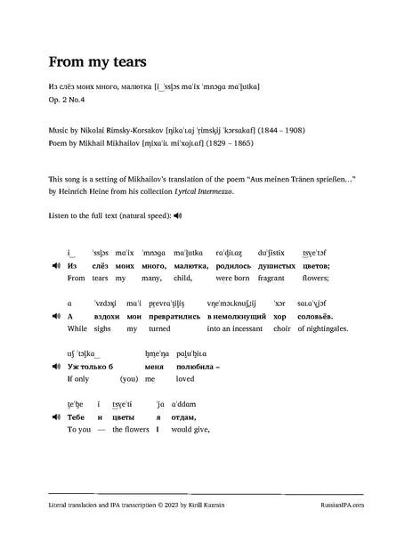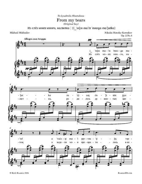 From my tears (Из слёз моих много, малютка), Op. 2 No.4 by Rimsky-Korsakov (5 pages)