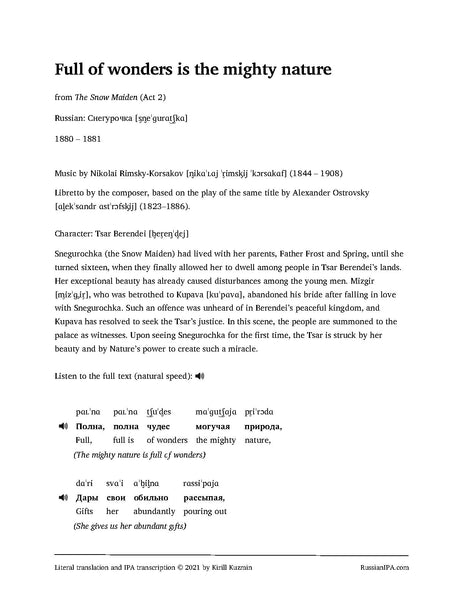 Full of wonders is the mighty nature — Tsar Berendei's cavatina from Snow Maiden by Rimsky-Korsakov (6 pages)