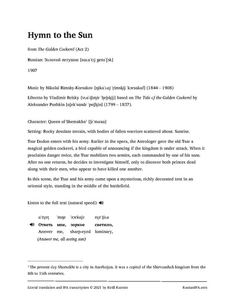 Hymn to the Sun — Queen of Shemakha's aria from The Golden Cockerel by Rimsky-Korsakov (11 pages)