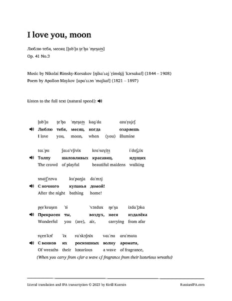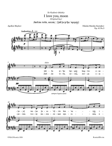 I love you, moon (Люблю тебя, месяц), Op. 41 No.3 by Rimsky-Korsakov (7 pages)