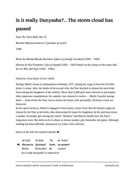 Is it really Dunyasha?.. The storm cloud has passed — Lykov's aria from Tsar's Bride by Rimsky-Korsakov (11 pages)