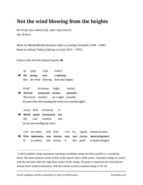 Not the wind blowing from the heights (Не ветер, вея с высоты), Op. 43 No.2 by Rimsky-Korsakov (6 pages)