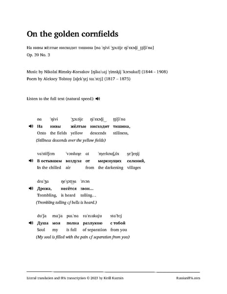 On the golden cornfields (На нивы жёлтые нисходит тишина), Op. 39 No. 3 by Rimsky-Korsakov (5 pages)