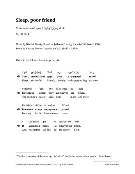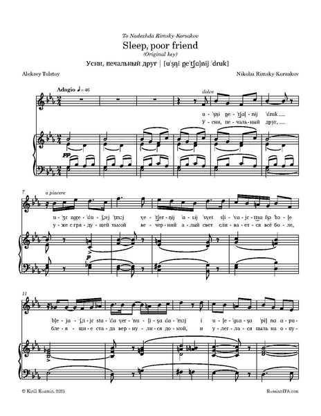 Sleep, poor friend (Усни, печальный друг), Op. 39 No.4 by Rimsky-Korsakov (8 pages)