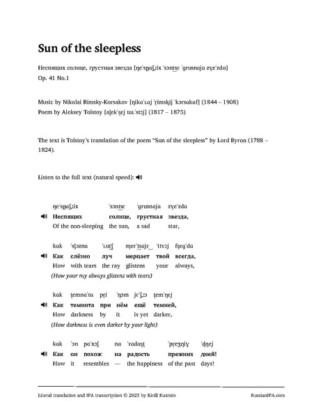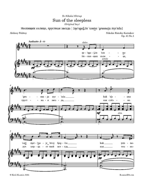 Sun of the sleepless (Неспящих солнце, грустная звезда), Op. 41 No.1 by Rimsky-Korsakov (6 pages)