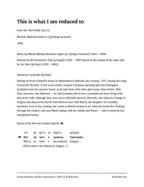 This is what I am reduced to — Lyubasha's aria from Tsar's Bride by Rimsky-Korsakov (5 pages)