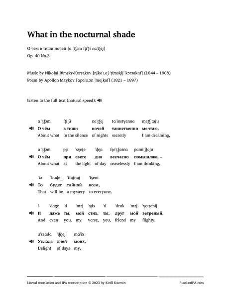 What in the nocturnal shade (О чём в тиши ночей), Op. 40 No.3 by Rimsky-Korsakov (6 pages)