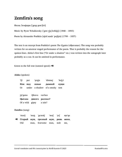 Zemfira's song (Песнь Земфиры) by Tchaikovsky (10 pages)